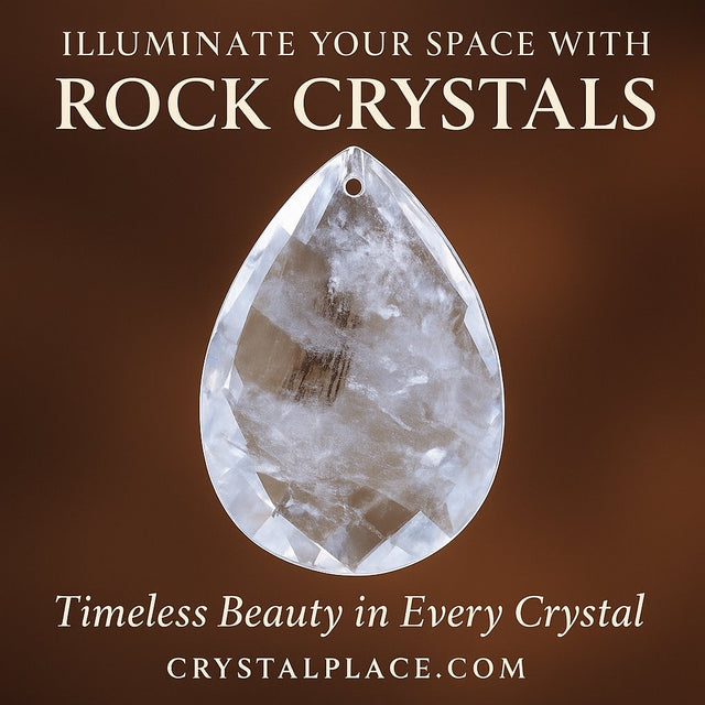 Rock Crystal is a rare and unique quartz crystal formed in the earth Size: H: 4 inches, Width: 2-3/4 inches Shape: Pendelogue, Single side faceted Color: Clear Rock crystal has a 2 mm hole on top Each Crystal is hand polished piece for maximum brilliance Rock Crystal is attached to a 10-inch Chrome chain for easy hanging