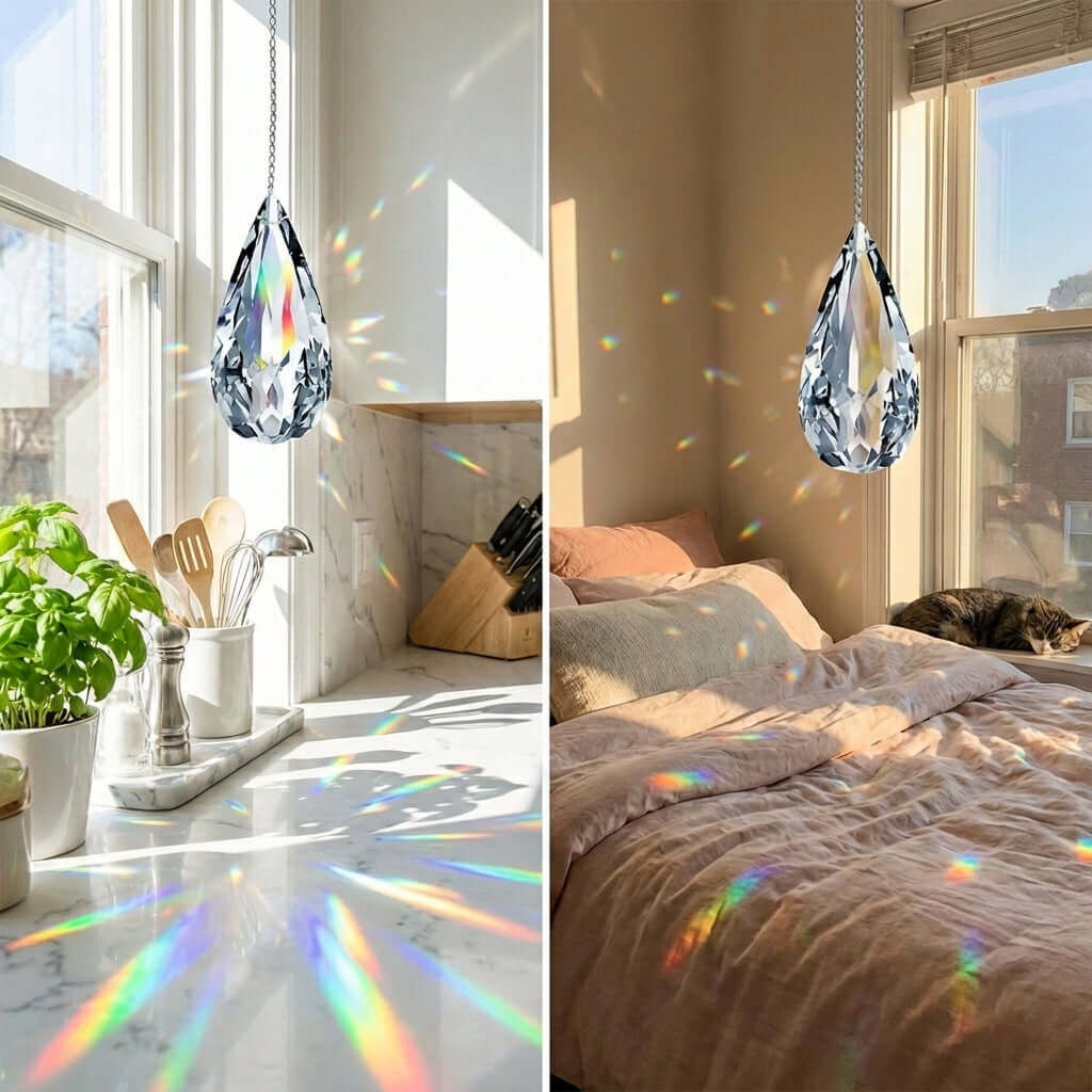 This 76mm (3-inch) clear crystal teardrop prism is crafted from genuine Swarovski Strass crystal, the world's gold standard for optical brilliance and flawless clarity. Its classic vintage pear shape and expertly cut facets capture light from every angle, scattering breathtaking rainbows across walls and ceilings and transforming any ordinary space into something truly magical.