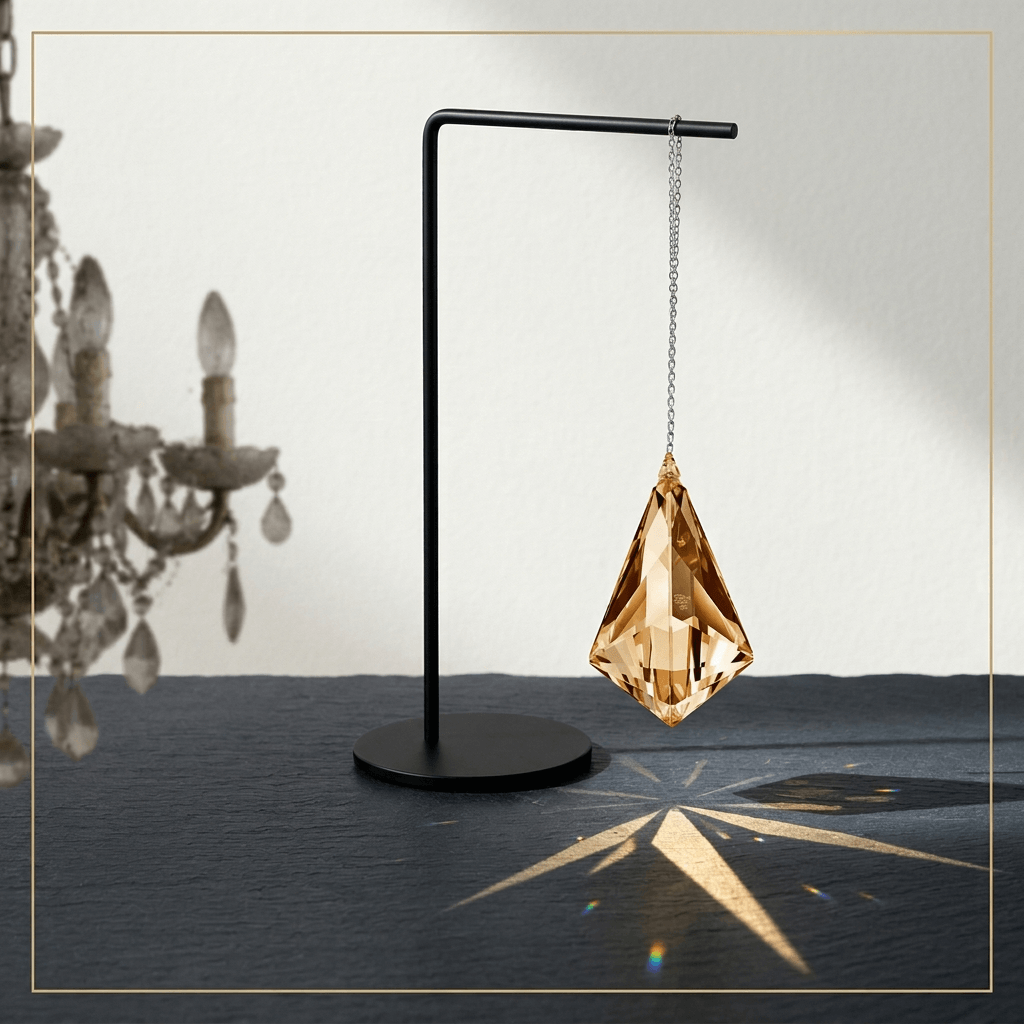 Crafted from genuine Swarovski Strass crystal, this 63mm Golden Shadow Vibe crystal drop features flawless precision-cut facets that play with light in the most unexpected and enchanting ways, producing a rich, moody light display that feels both luxurious and deeply atmospheric.